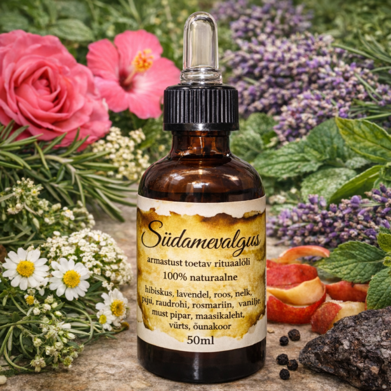“Südamevalgus” on käsitsi loodud maagiaõli, mis ühendab endas taimede väe, pehmuse ja ürgse kire – tõeline armastuse eliksiir sinu rituaalideks, meditatsiooniks või igapäevaseks südame toetamiseks.
