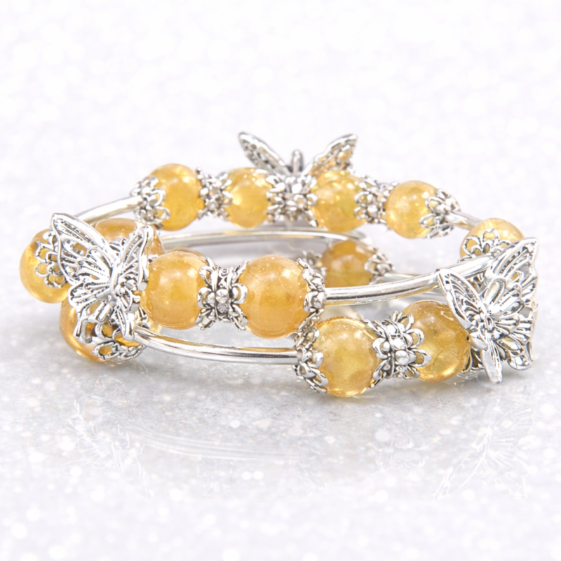 Soojades Meekaltsiidi toonides helmed kannavad endas päikese pehmust ja sisemist rahu, tuues südamesse rõõmu ning tasakaalu. Õrnad hõbedased liblikad sümboliseerivad muutumist – julgust lasta lahti vanast ja lubada endal lennata uude.