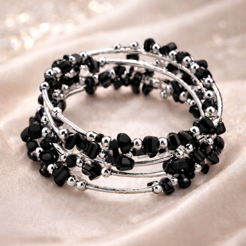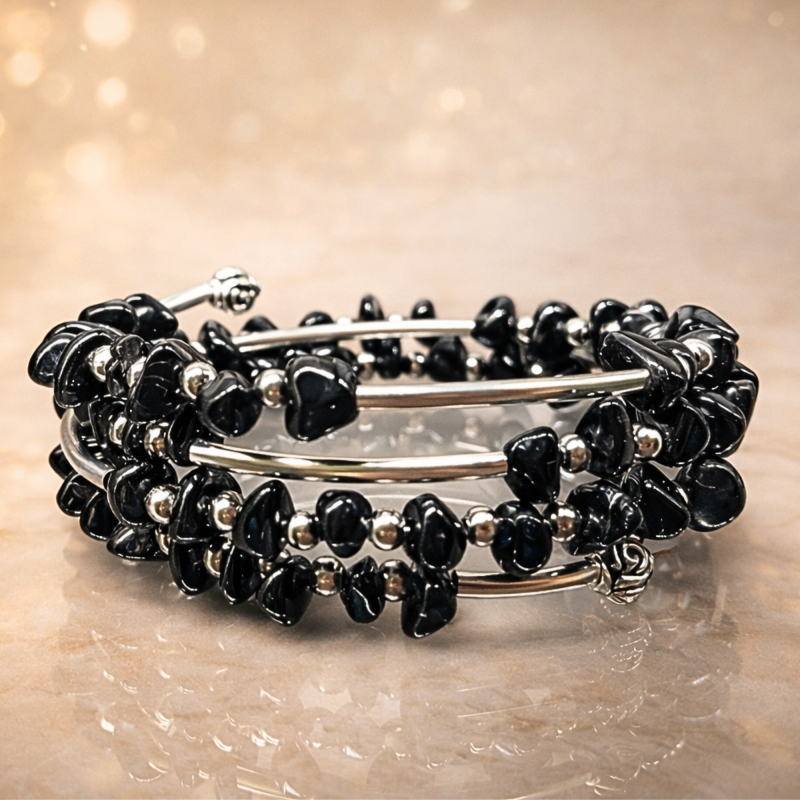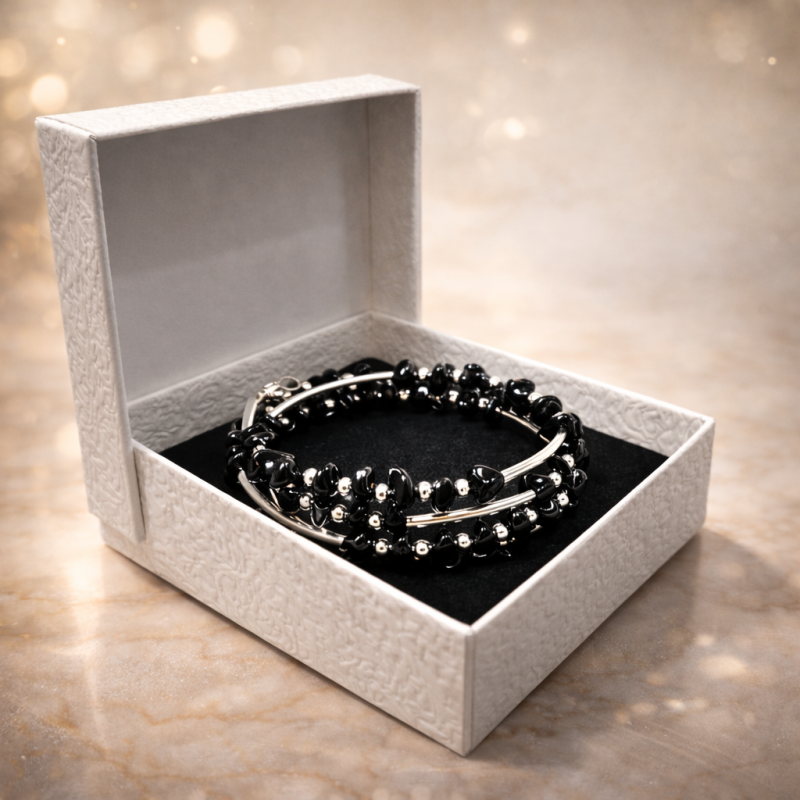 See ainulaadne käevõru ühendab endas Musta Turmaliini ilu ja hõbedaste detailide modernse sära. Mitmekihiline disain loob luksusliku, kuid samas loomuliku üldmulje – ideaalne naisele, kes hindab stiili ja sisemist jõudu.