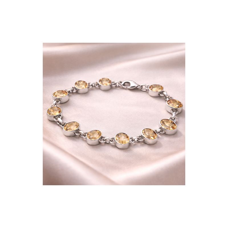 See elegantne hõbedast käevõru on kaunistatud säravate vertikaalselt ovaalsete Tsitriinikividega, mille soe kuldkollane toon püüab pilku ja peegeldab valgust igast küljest.